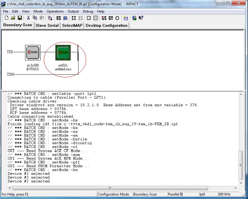FEM connector is top side of board. A small ribbon cable is connected to it and comes out the top of the front panel. The red wire on the programming cable should be on top |