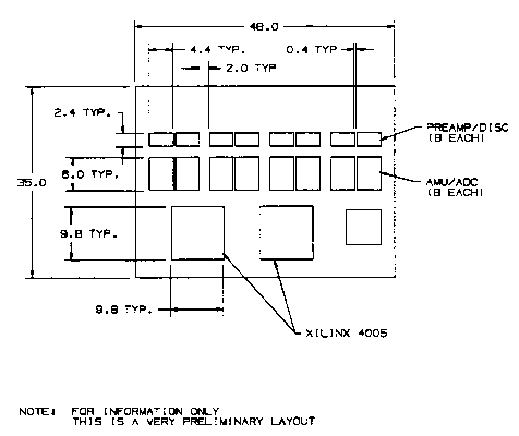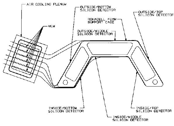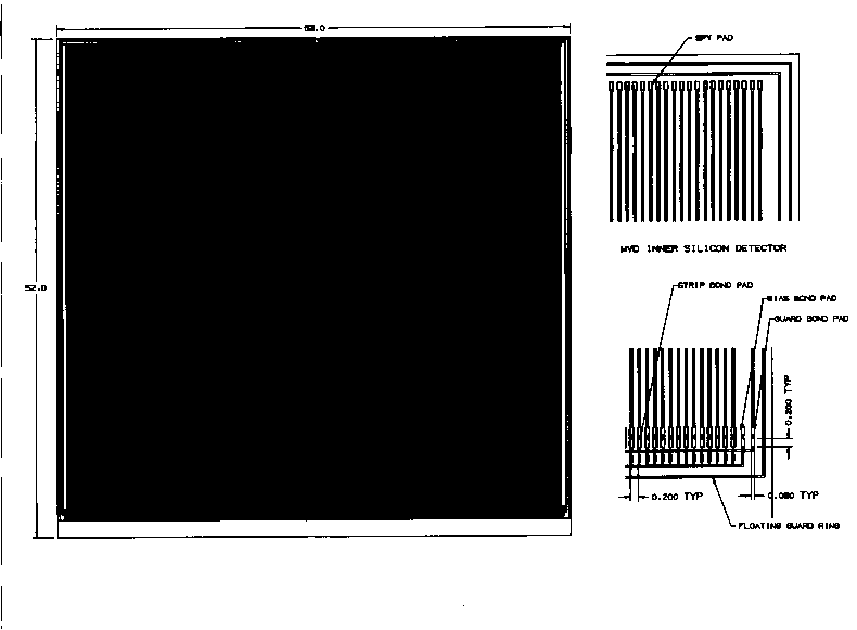 The outer layer detectors have the same strip pitch and pad size, but the strips are longer. The detector measures 53 by 74.5 mm.